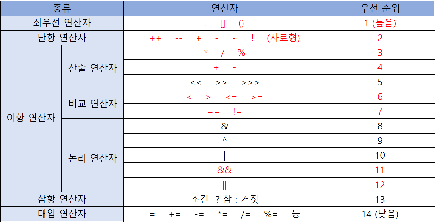 특정 변수나 리터럴(값)에 대해 주어진 식을 계산하여 결과를 얻어내는 연산을 수행하는 기호