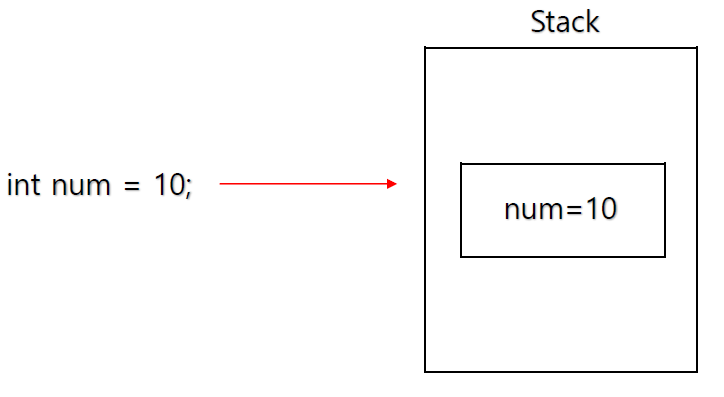 이러한 기본형 변수는 스택 메모리에 직접 저장되며 값을 가지고 있다