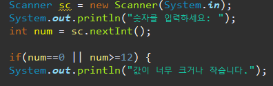 Q1. 입력 받은 값이 0 또는 12 이상일 경우