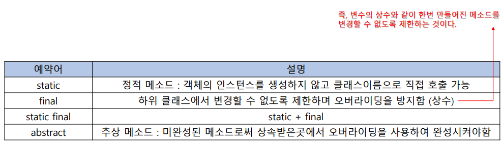 메소드 예약어는 개발자가 사용하려는 용도에 따라 선택이 가능
