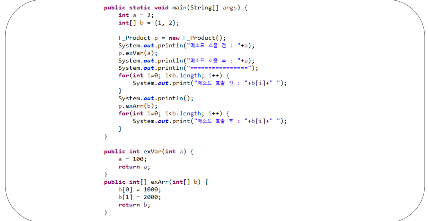 1. 기본 자료형의 경우 메소드 안에서 값을 변경해도 원본 변수는 변경되지 않음