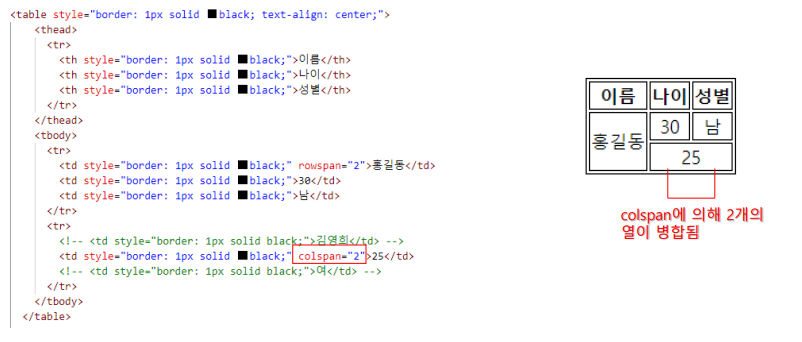 테이블에서 열 병합을 사용하기 위한 속성