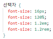 * html의 글꼴 크기의 기본 설정 값은 16px