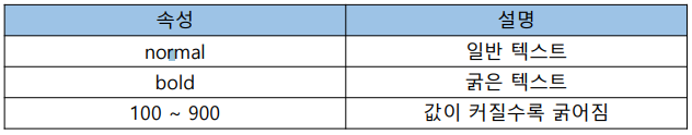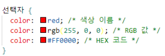 텍스트의 색상을 지정하며 색상 이름이나 RGB값, HEX코드 등을 사용하여 지정 가능