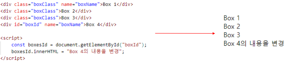 console.log(boxesId.textContent + “ 변수와 문자열을 쓸 수도 있습니다.”);