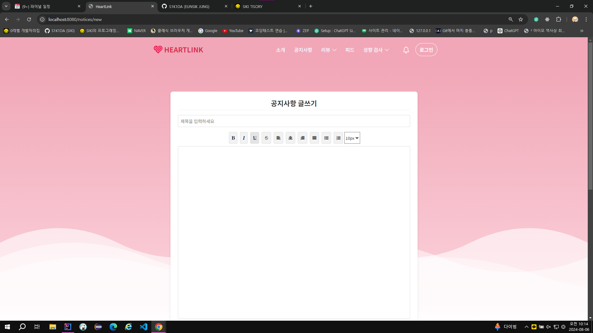 글 작성 페이지같은경우에는 에디터를 가져와 사용하기보다는 HTML,CSS,JS로 만들어서 기능 구현을 완성했다.