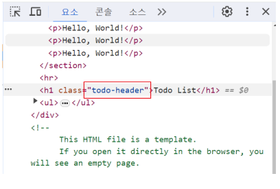 크롬 개발자 도구에서 확인 시 class 이름이 제대로 들어간것을 확인 가능