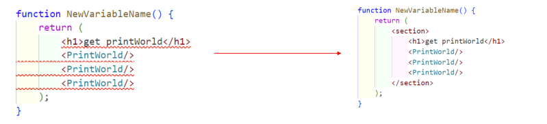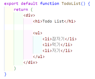 JSX에서 여러 개의 엘리먼트를 반환할 때는 반드시 하나의 부모 태그로 감싸주어야 합니다. 이를 지키지 않으면 오류가 발생합니다. 부모 태그로 사용할 수 있는 것은 HTML의 <div>, <section>과 같은 모든 태그가 해당됩니다.