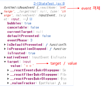 이벤트 발생 시 넘겨지는 값은 event.target에 담겨서 전달됨
