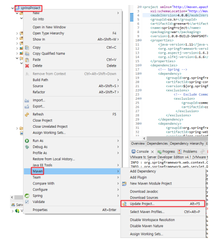 2. 프로젝트 우클릭 → Maven → Update Project 선택.