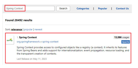 Spring Context 검색 후 클릭하여 취약점, 사용빈도등을 확인 가능